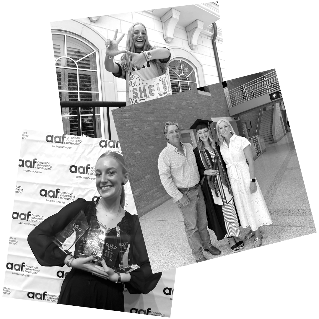 I held leadership roles in both my sorority, Kappa Kappa Gamma, and the AIGA West Texas chapter student group. During my time at Tech, I even snagged 7 American Advertising Awards and graduated with Summa Cum Laude honors.