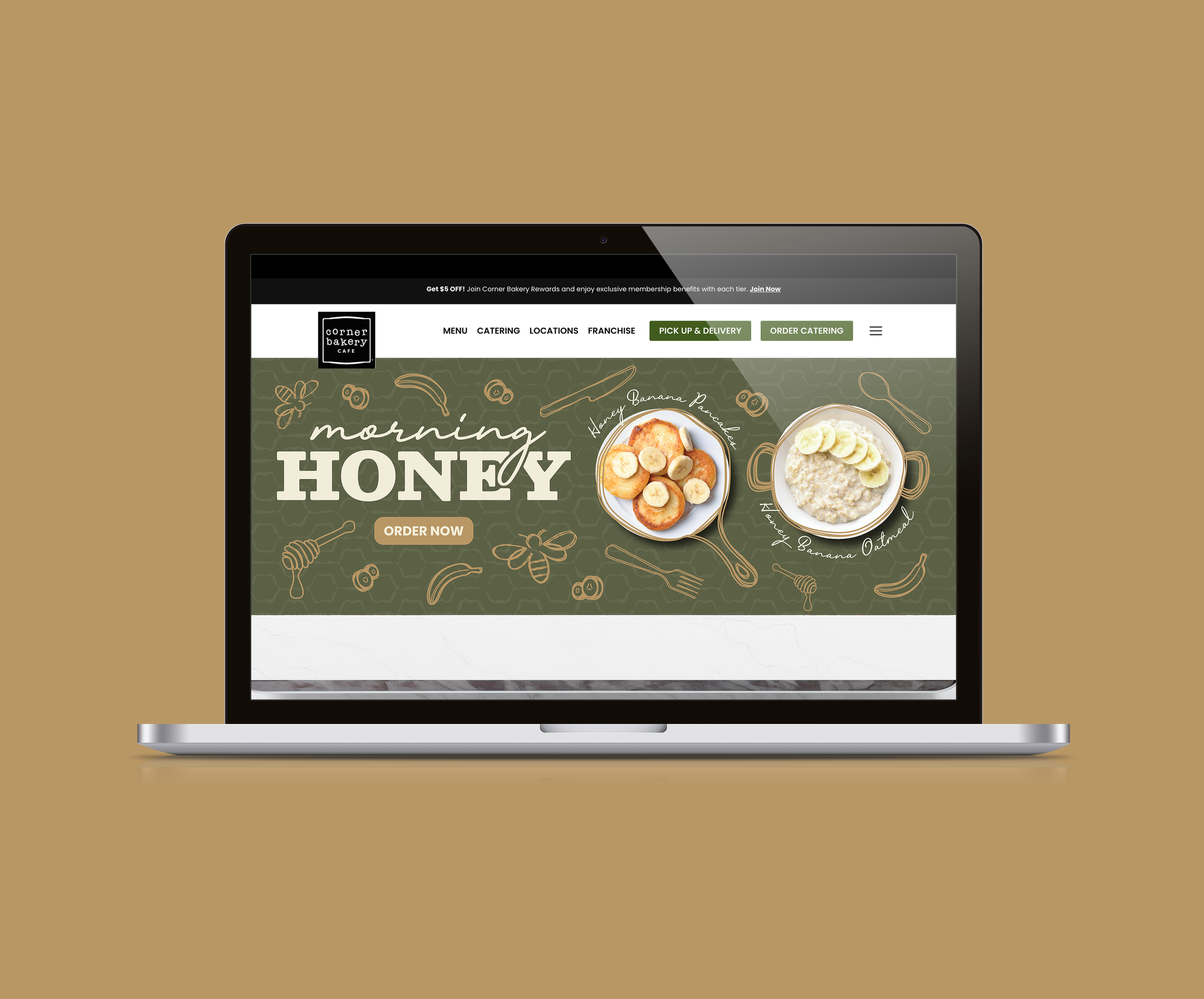 Rooted in nostalgia and everyday comfort, Corner Bakery is a place for familiar food, warm coffee, and sweet moments. Their design reflects this through approachable typography, warm tones, and great photography that feel as inviting as the brand itself.